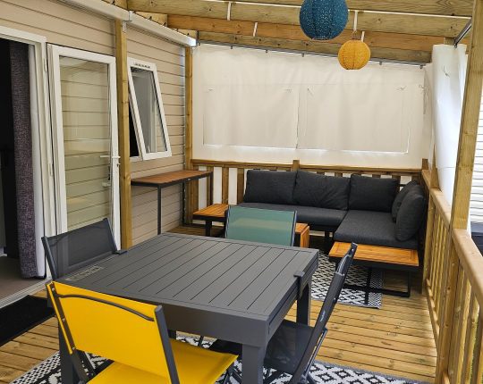Ce mobil-home de 2022 (modèle IRM Rêve d’été (isolation 4 saisons) ), d’une surface de 40 m², est installé sur une parcelle de 150-180m² .